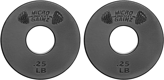 - Premium Set: The black Micro Gainz fractional plates make it simple to distinguish between various weight discs while working out; This set includes 2 Standard Size (1 inch) Fractional dumbbell .25 lb weight plates
