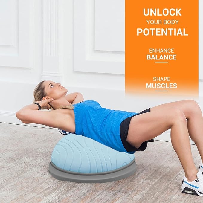 - THICKENED & EXPLOSION-PROOF: Our half balance ball is made of high-quality environmentally friendly PVC material, the balance ball skin is thickened and designed to provide strong elastic support and protect joints during exercise, with a load capacity of up to 660 pounds.