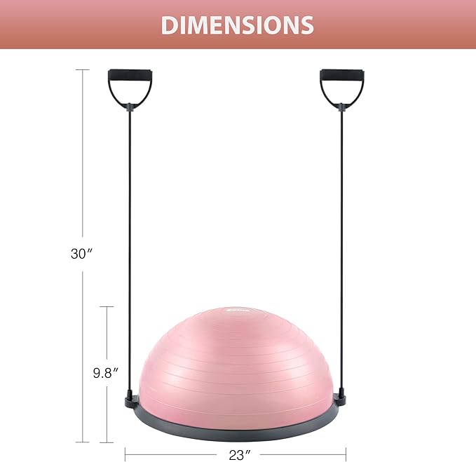 - BALL PUMP INCLUDED: A complete combo, this half-dome stability ball comes with a complimentary foot pump that makes it easy to get fully inflated to 9.8” in under 5 minutes. The ball’s high-quality air valve prevents air leakage and extends service life