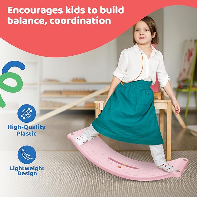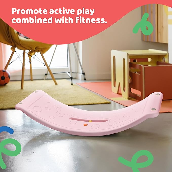 Dazmers Balance Board - Plastic Wobble Board for Improving Balance - Rocker Curvy Board - Balance Trainer Board for Yoga and Overall Fitness - Balancing Toys for Children and Adult - Pink