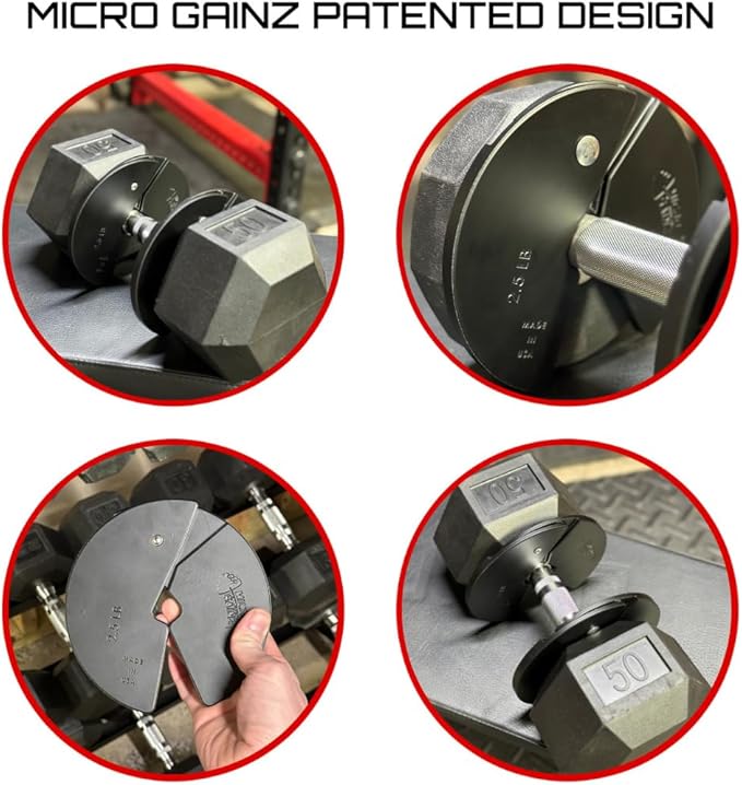 - Space-Saving Precision: Micro Gainz 4-Piece Dumbbell Micro Plate Weight Set – Four 2.5LB micro plates, expertly crafted for a secure fit on most dumbbell handles; Ideal for fractional weight, change plates, and enhancing barbell or weight plate sets; Elevate your workout with precision