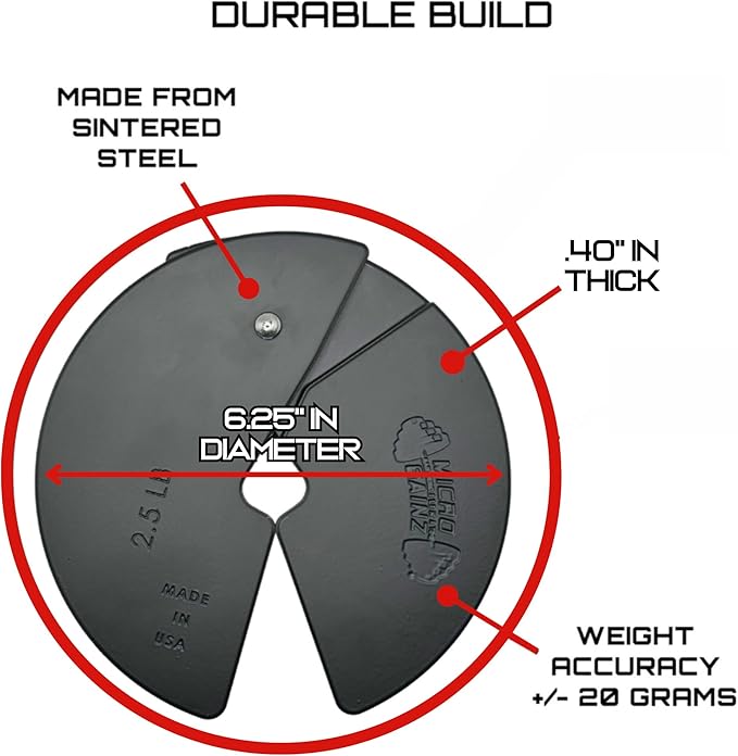 - Durable Build: Our gym dumbbell plates are crafted from robust sintered steel, featuring a long-lasting black powder coat finish. Plates are 6.25" Inch in diameter and only .40" thick to allow more room on the dumbbell handle for your grip. Proudly made in the USA with rigorous quality control, ensuring years of reliable performance across all strength levels