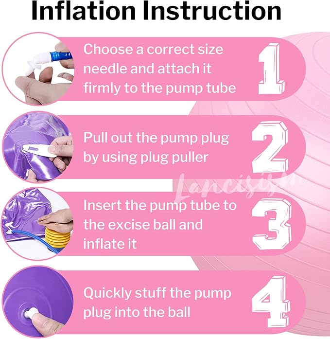 - SIMPLE TO INFLATE & USE - The aerobic exercise ball takes two filling sessions for proper inflation. Partially inflate it at night and then fully inflate it in the morning. Thanks to the ball air pump you can inflate it quickly and easily anytime without any hassles.