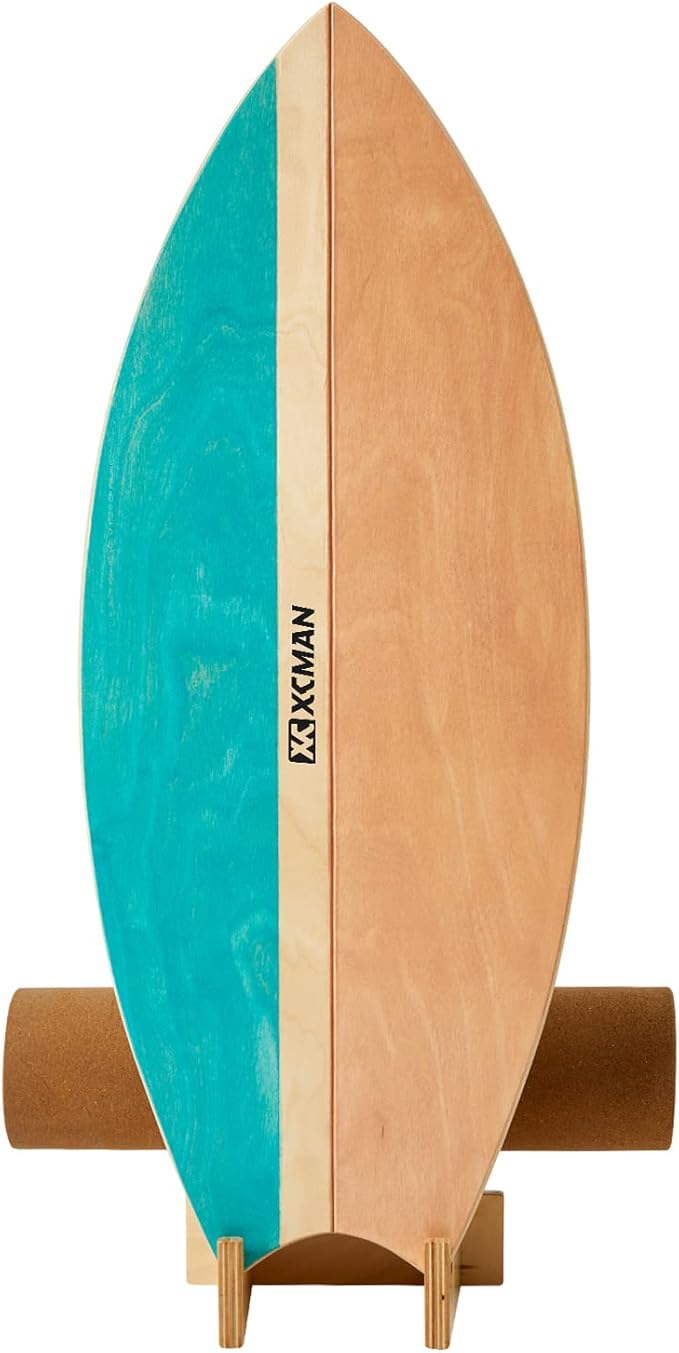 XCMAN Surf Balance Board Trainer with Roller Wooden Exercise Balancing Stability Trainer - Non Slip Surface for Adults Kids|Balance Board for Surfing,Snowboarding,Skateboarding,Hockey,Yoga Training