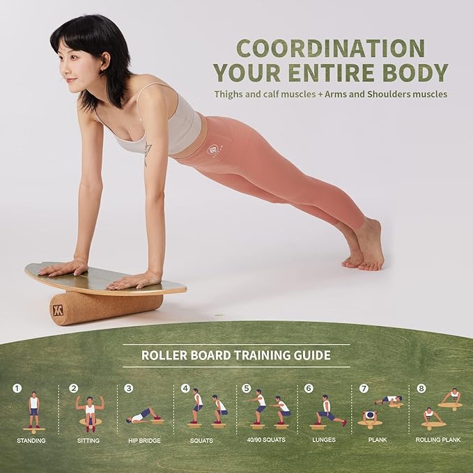 - WON’T SCRATCH FLOORS&EASY-GLIDE WOODEN ROLLER:The balance board surface is smooth and don't worry about damaging the floor.This roller also work great on different types of floor,including wood, carpet, cork, concrete,etc