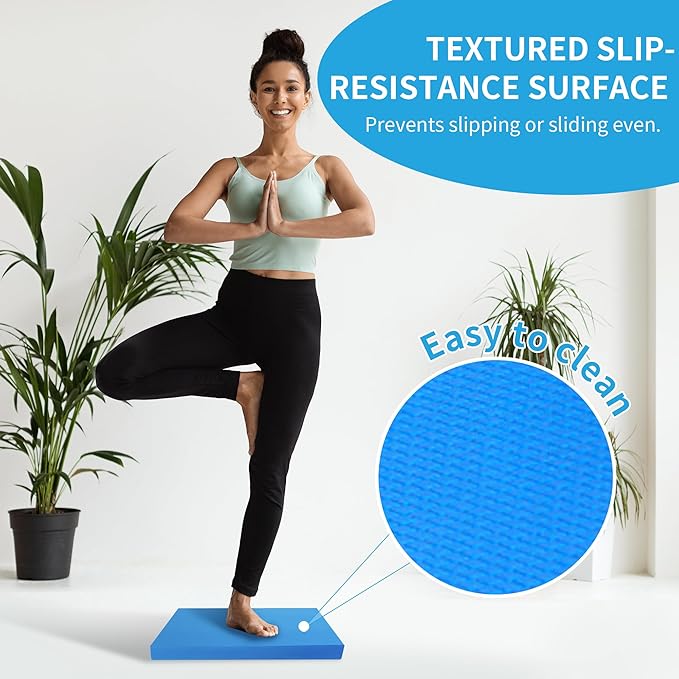 - Cleaning: The balance pad is easy to clean. Rinse and dry with water after use.Foam yoga pad convenient for standing on and strength training, yoga, pilates, ballet , push-ups, squats, sit-ups, etc.