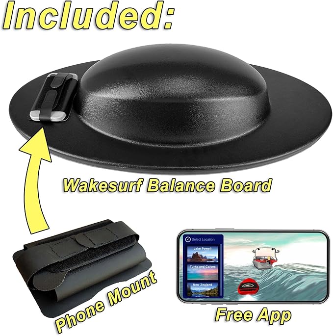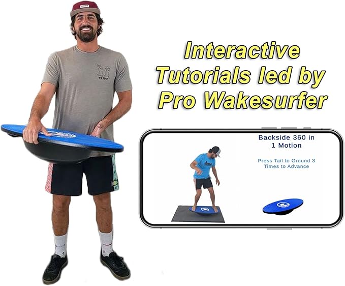 Wakesurf Balance Board by Lakesurf - Includes Motion Tracking App & Phone Mount for Wakesurfing Simulation, Games, Fitness Training, and Tutorials