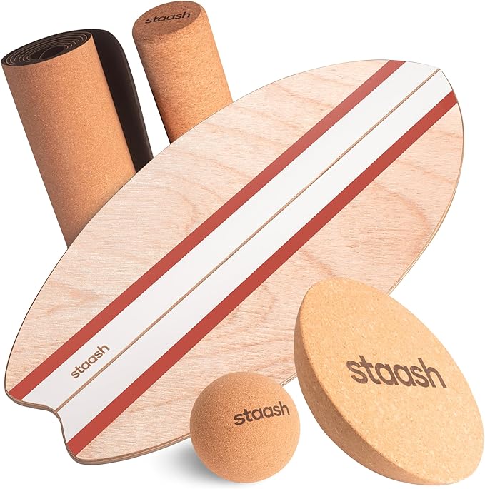 STAASH® Balance Board – Starter (Board + Roller) or Full Kit (w/Mat, Ball & Disc) – Core Balance Trainer for Fitness, Rehab, Surf – Free Coaching Videos