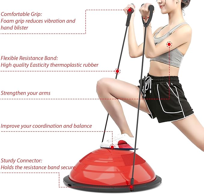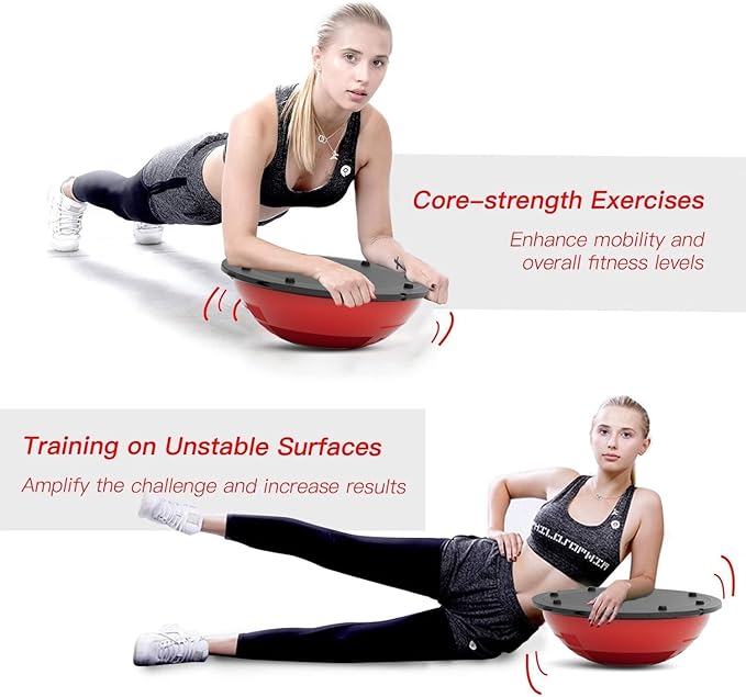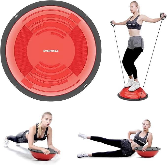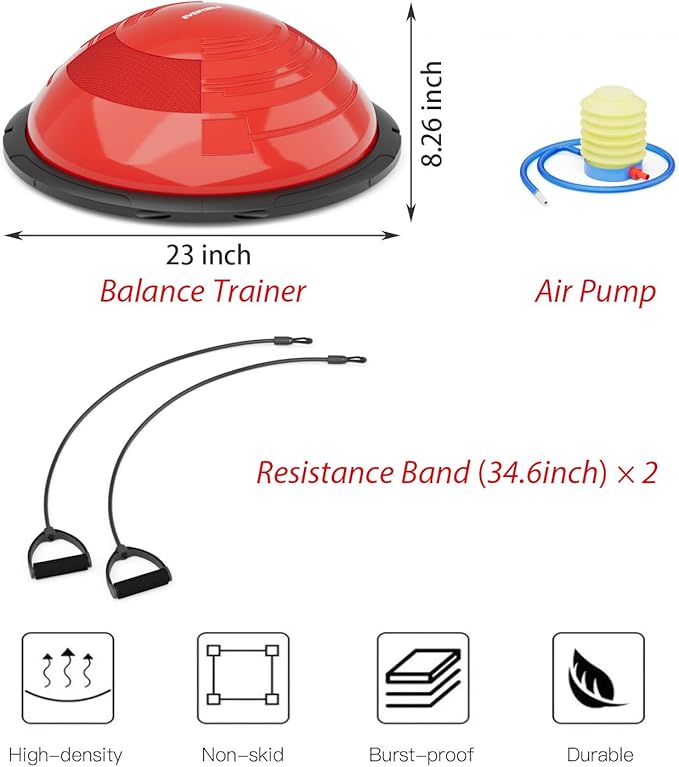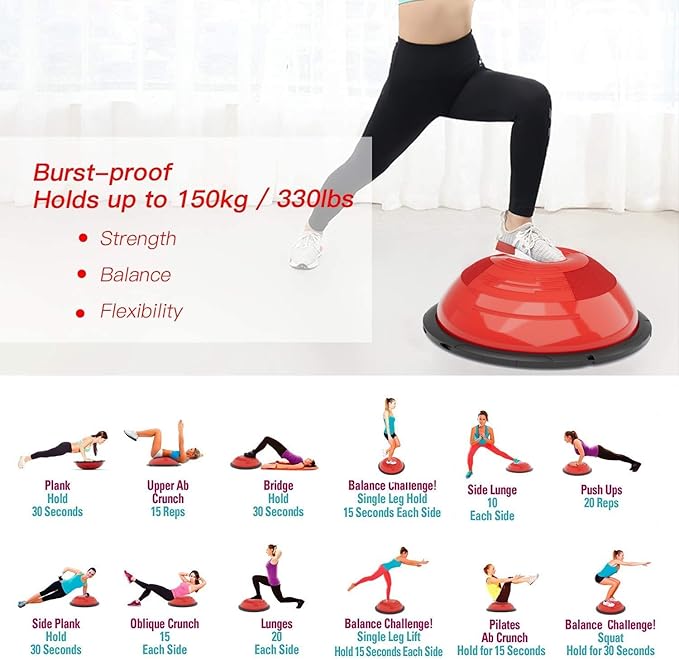 - Safe Use & Anti-slide: This half ball is made of PVC, durable and very easy to clean. Anti-skid circle surface, anti-slide base to improve users' stability. Wear-resistant base plus 8 non-skid feet and anti-burst technology guarantee safety during use even when you're sweaty