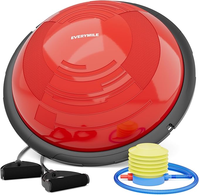 EVERYMILE Balance Ball Trainer with Resistance Bands & Pump Stability, 23.6 inch Yoga Exercise Ball for Home Gym Core Training Anti-Skid Surface