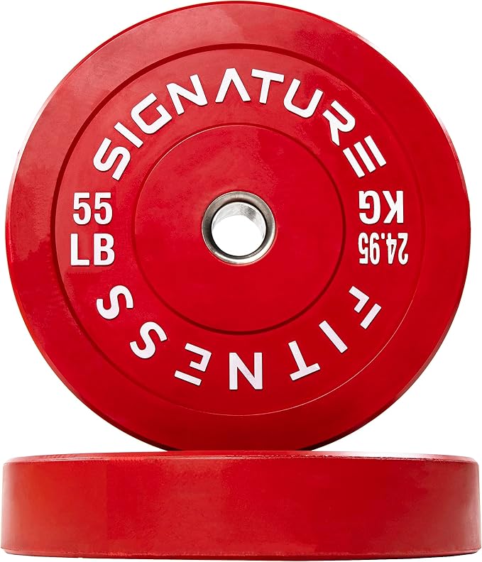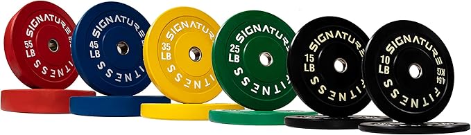 - 🌟 100% VIRGIN RUBBER - LOW ODOR AND BOUNCE 🌟 - Signature Fitness Bumper Plates contain NO recycled rubber. This means low to no odor, guaranteed durability, and low "dead" bounce for safety.