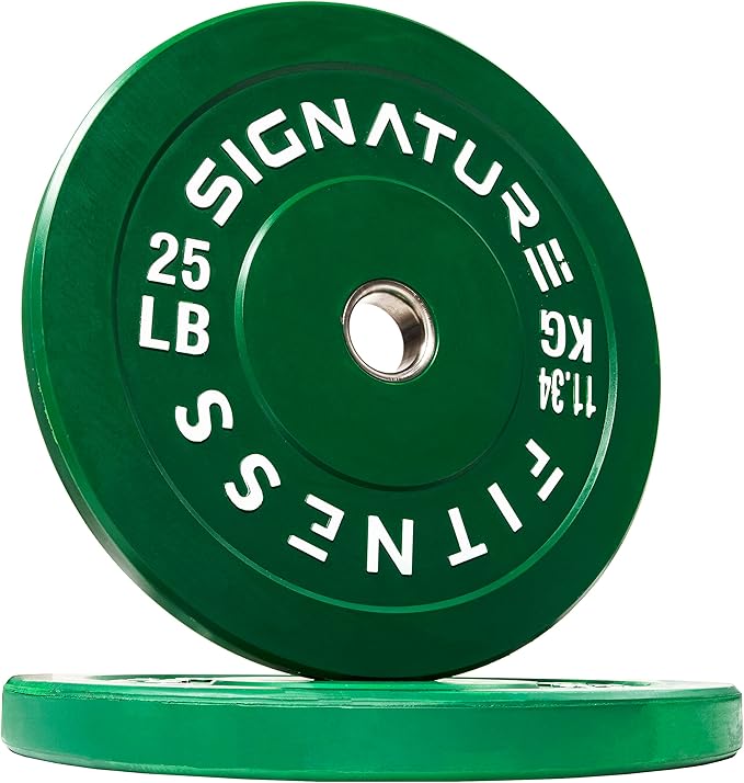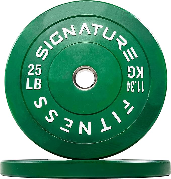 • 🌟 100% VIRGIN RUBBER - LOW ODOR AND BOUNCE 🌟 - Signature Fitness Bumper Plates contain NO recycled rubber. This means low to no odor, guaranteed durability, and low "dead" bounce for safety.