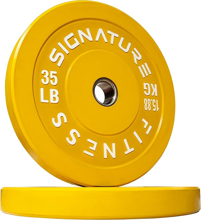 • 🌟 100% VIRGIN RUBBER - LOW ODOR AND BOUNCE 🌟 - Signature Fitness Bumper Plates contain NO recycled rubber. This means low to no odor, guaranteed durability, and low "dead" bounce for safety.