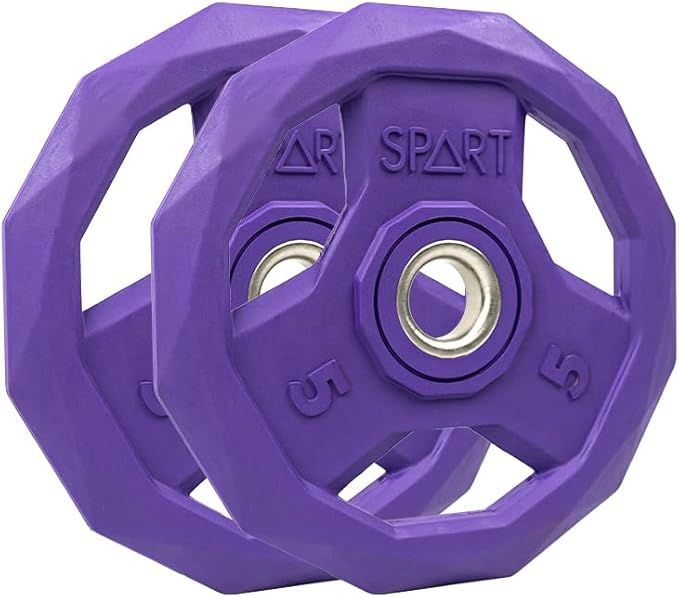 - 💪FEATURE: SPART weight plates have a solid iron core and slide rubber surface. This design can protect the floor from damage and ensure enough weight when you do exercise. The strong steel ring insert can help you assembly the barbell easily. The three holes are designed for grip according to your hands and you can do weightlifting exercise with single plate as well.Also,each size has a unique color that you can easily identify.