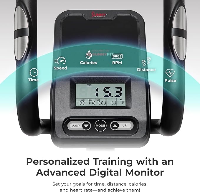 - 【ADVANCED DIGITAL MONITOR】Personalize training by setting time, distance, calorie, and heart rate goals. Track your progress in real-time with the advanced digital monitor and use the built-in pulse sensor for precise workout metrics.