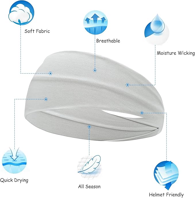 - 【Gray Sports Headband 】Gray Headband for men and women is lightweight,breathable, soft and sweat wicking; resist your eyes away from sweat, wick away moisture and dry quickly,keep your hair in place during workouts and sports