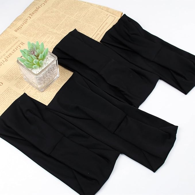 Black 4 inches Wide Headbands for Women, Non Slip Workout Yoga Running Hair Bands Head Wrap Sweat Bands, Pack of 12