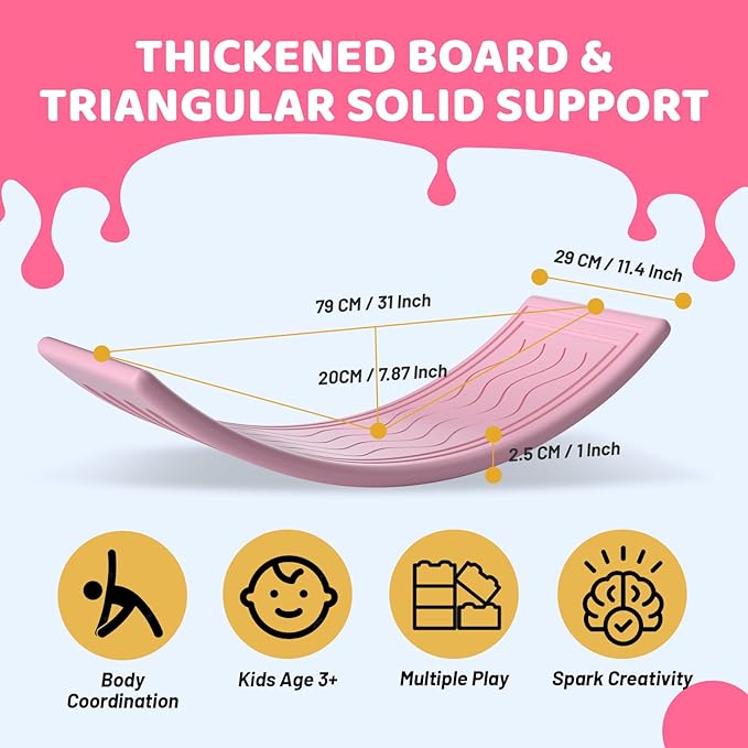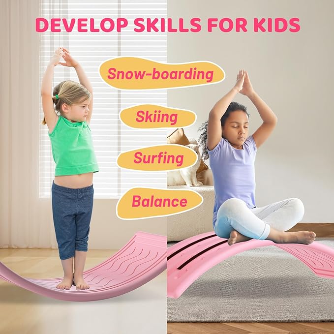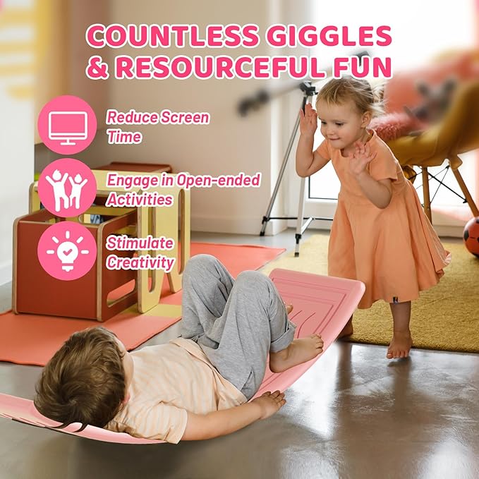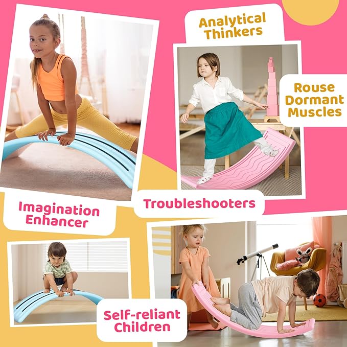 - 【Developmental Benefits】: Open-ended toys are loved by the whole family. This balance board is not just a toy, but also a tool for promoting the development of multiple skills. It stimulates the vestibular system, which is essential for general development and learning. It encourages imaginative play and cultivates creative thinking. Additionally, it helps develop balance, confidence, and body posture. Incorporating it into a yoga routine can enhance its difficulty and strengthen the abs and legs