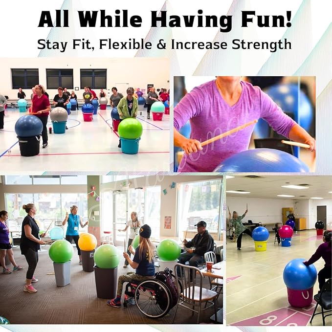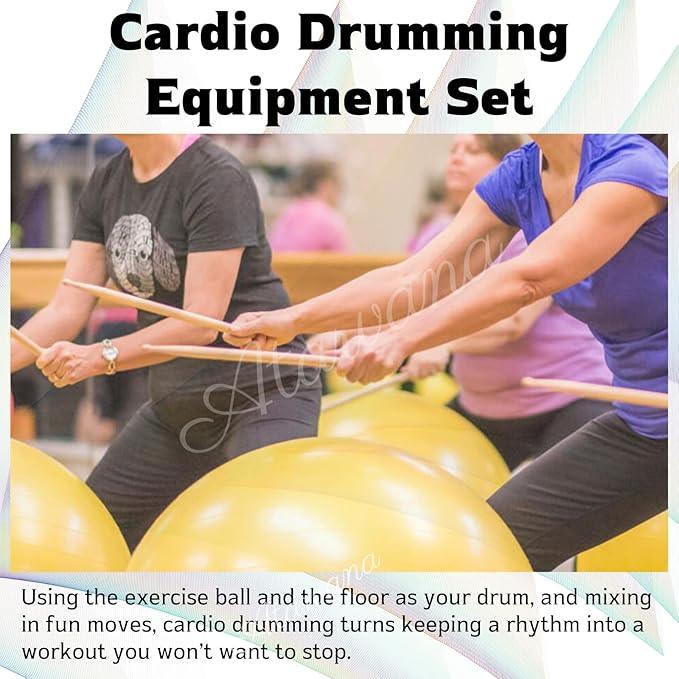 Atarvana Cardio Drumming Equipment Set, Extra Thick Yoga Ball with Pump & Cardio Drumming Sticks with Grips, Aerobic Exercise Ball Drumsticks Workout Set for Stability, Rhythm, Gymnastics