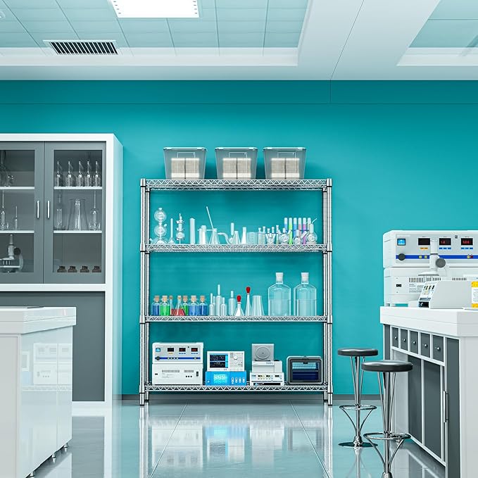4 Tier Storage Rack Metal Wire Shelving Unit, Storage Standing Shelf Organizer for Laundry Bathroom Kitchen Pantry Closet Garage Basement Utility Room, Chrome 17.7" D x 59.1" W x 70.4" H