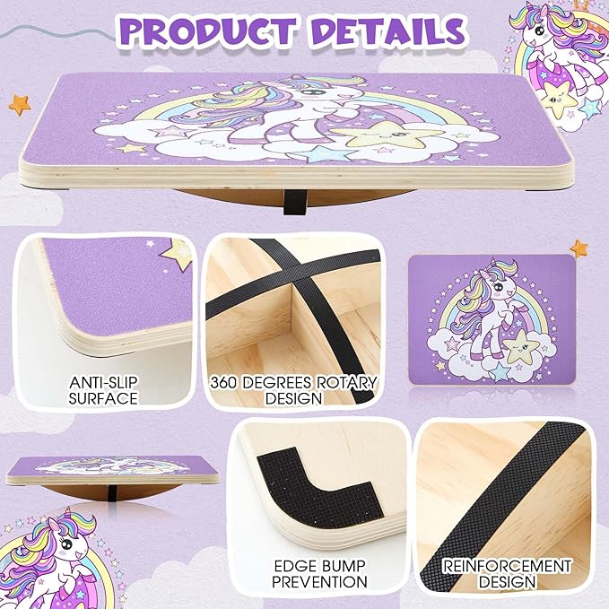 - Interesting Design: the kid balance board adopts a cute unicorn pattern design, which attracts children to play indoors or outdoors while improving balance, stability and core coordination, etc