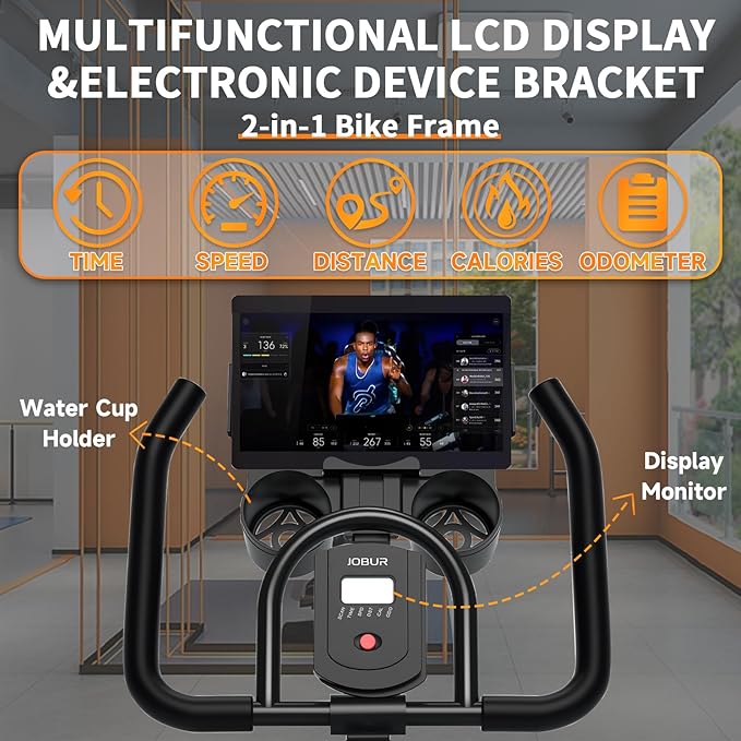 - 【JOBUR is trustworthy】JOBUR is a trusted leading brand of fitness installatios, we always put the customer experience first, and are committed to making our customers fall in love with fitness and fun fitness! We are committed to providing excellent customer service, JOBUR exercise bike is a great choice for your home use. We are confident that you will love this indoor bike.