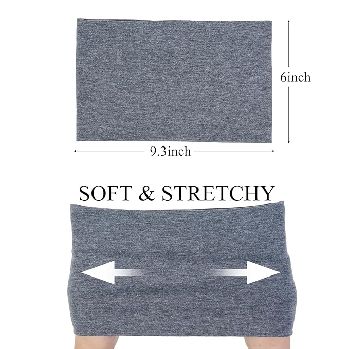 - 6’’ Wide Headbands for Women’s Hair large enough to scrunch into any size you like. You can either wear them fully wide or double them over for a thinner hair band that could potentially absorb more sweat if you're a sweater and/or using to work out. These extra wide head wraps for women would be a great solution for covering your ears while exercising outdoors and also keeping your ear buds in place.