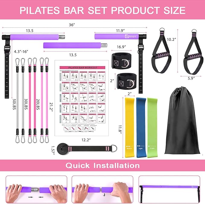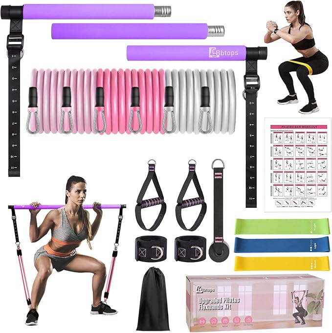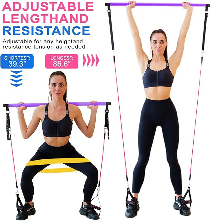 - 【Multifunctional Pilates resistance bands】Upgraded Pilates bar kit with resistance bands Extra three Resistance Band Set Can Be Integrated Seamlessly With Various Popular Workout Program. As long as you use it to do different movements, you can shape and maintain a perfect figure. Door anchor, handles, ankle straps and three high-quality resistance bands enrich your exercise methods.