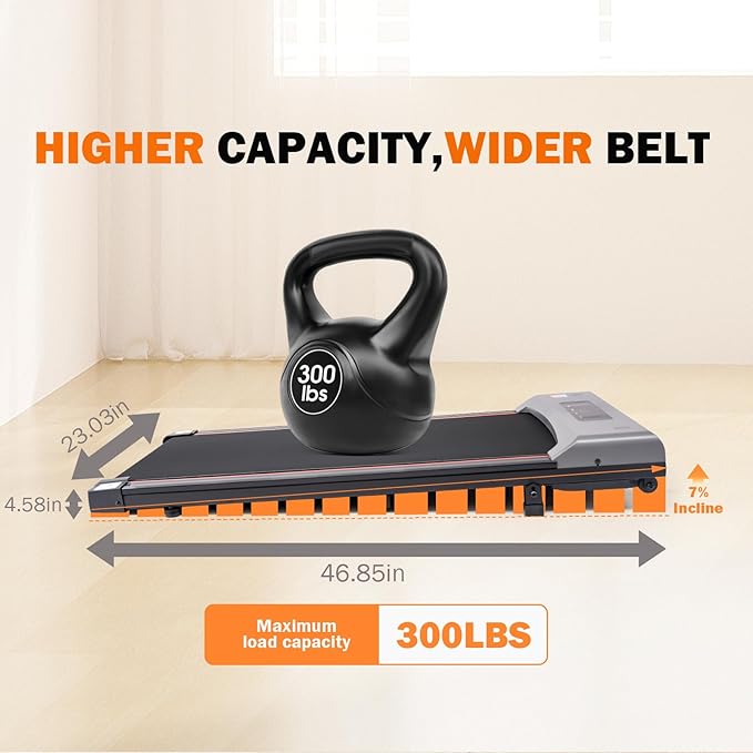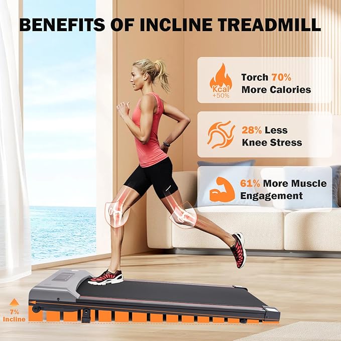 - Enhanced Workout with 7% Incline: Burn more calories and protect your knees with our 7% incline walking pad treadmill. Engage more muscles for a full-body workout. This treadmill with incline is ideal for treadmills for home small spaces and compact treadmill enthusiasts. Perfect for those looking for an incline walking pad or treadmills for home use.