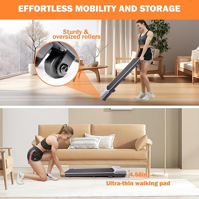 - Dual Control Options: Phone App and Remote: Control your under desk treadmill easily with a remote or mobile app. Never worry about losing control of your walking pad treadmill, even if the remote is misplaced. Ideal for office setups needing a desk treadmill or a treadmill desk solution. Best under desk treadmill choice.