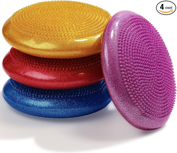 - Package Include: you will receive 4 pcs of wobble cushion with the inflation pumps; The glitter design adds a touch of fun and visual interest to the cushion, making it suitable for both office, home and school use