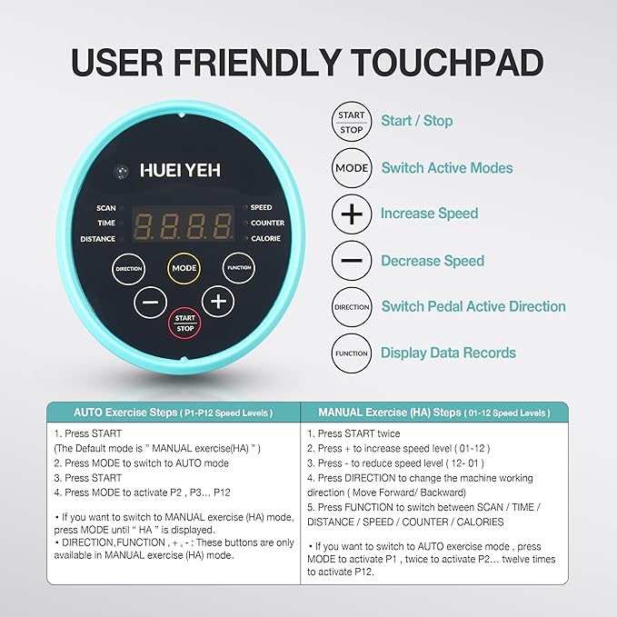 - 【Ultimate Value Package】HUEIYEH Under Desk Elliptical Machine*1, Remote Control *1, Resistance Bands *1, Non Slip Mat *1, all backed by 6 month replacement and lifetime support services. Ready to use right out of the box, this package saves you both money and time on finding other assistive devices!
