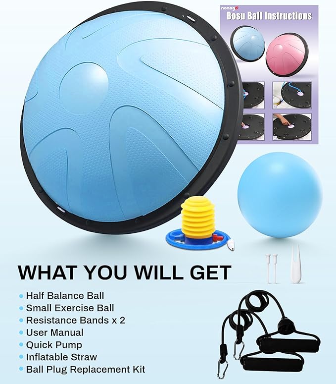 nonogo Half Balance Ball Trainer with Resistance Bands & Small Exercise Ball, Stability Ball for Core Strength, Full Body Workout, Yoga, Fitness, Physical Therapy