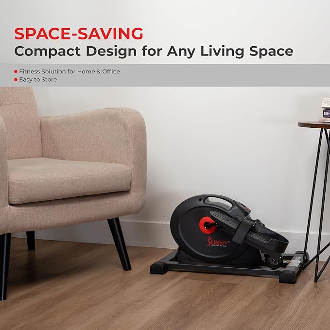 Sunny Health & Fitness Smart Mini Pedal Exerciser, Under Desk Bike/Elliptical for Home Workout & Cycle Cardio Training, Free SunnyFit App Link, Optional in Color, Mat/Workout Bands or Steel Stabilizer