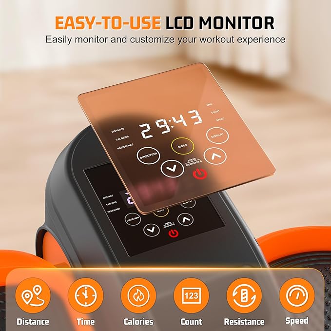 - 【Smart Display Screen, Monitor Whole Workout】This ellipse leg exerciser as seen on TV tracks your workout time, distance, and calories burned, making it simple to monitor your progress and stay motivated. Large display makes it easy to read and operate, suitable for all ages