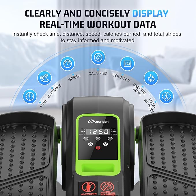 - Clear Display for Real-Time Workout Tracking: This ANCHEER ellipse leg exerciser as seen on tv that it features a built-in high-definition display that tracks and shows your workout data in real-time. Time, distance, speed, calories burned, and total laps are clearly displayed, helping you better monitor and adjust your exercise plan for optimal fitness results