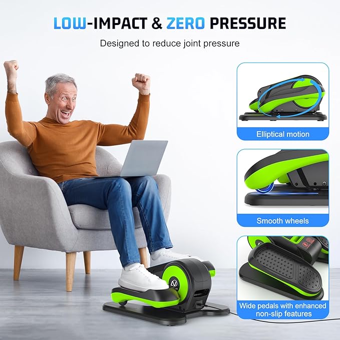 - Compact and Portable with Fully Assembled: This electric foot pedal exercise machine is designed compact and portable, measuring just 17*15*9IN and weighing only 12LB, making it easy for seniors to move. And this elliptical stepper comes fully assembled and ready to use straight out of the box. Ideal for home, office, or any setting, it allows for convenient, anytime exercise