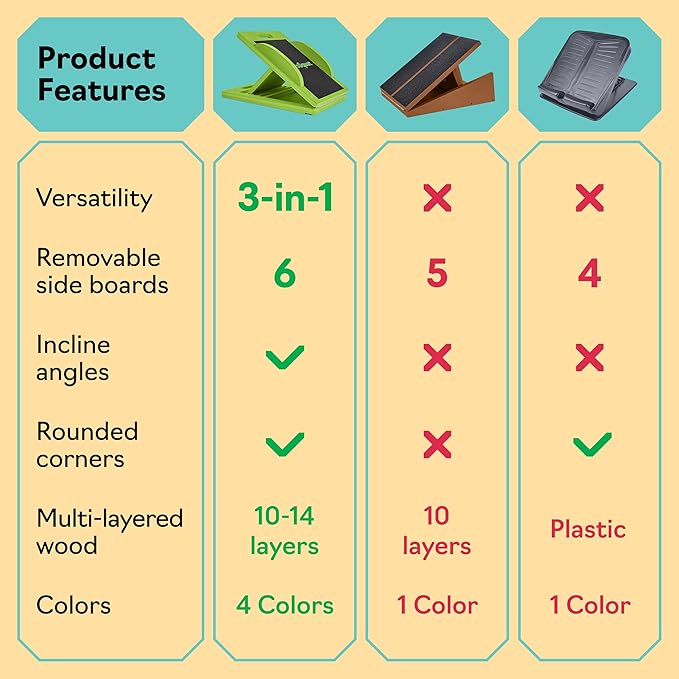 - 3-in-1 Slant, Stretch, and Balance Board - Enjoy the enhanced functionality of our innovative design, combining the benefits of a slant board, a stretching platform, and a balance board. Perfect for squats, stretching exercises, and balance training, this all-in-one tool takes your fitness routine to the next level!