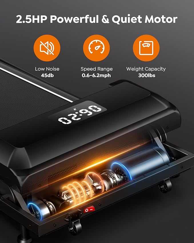 - 【Powerful and Quiet Motor】Incline walking pad treadmill boasts a robust 2.5HP motor, supporting up to 300 lbs. With a speed range of 0.6-6.2MPH, which can meet the fitness needs of you and your family at different stages better. Built-in cooling system and ultra-quiet operation, ideal for home and office use to achieve a combination of health and efficiency effortlessly. Easy to maintain your exercise routine even inclement weather!
