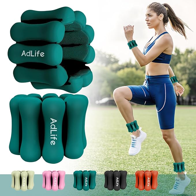 - [Durable & Comfortable Material] ADLIFE adjustable ankle weights are made from skin-friendly silicone, with durable steel wrapped in a soft silicone layer. These weighted ankle & wrist weights are rust-resistant, waterproof, and easy to clean. The textured inner design prevents sweat or water from sticking to the skin, ensuring the ankle weights remain comfortable, breathable, and ideal for both land and water workouts. This wearable weights set helps men, women, and kids build strength while enjoying a hassle-free fitness experience.
