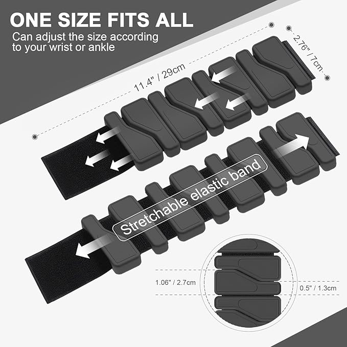 - [FULL-BODY WORKOUT ESSENTIAL]Each set includes two black adjustable weights (1 lb each, totaling 2 lbs for the pair). Customize intensity of your weighted bracelet by adding or removing modules. Wear the weighted wristbands as arm, ankle, feet, leg, hand, or wrist weights for dryland or aquatic workouts, daily fitness, strength training, or physical therapy.