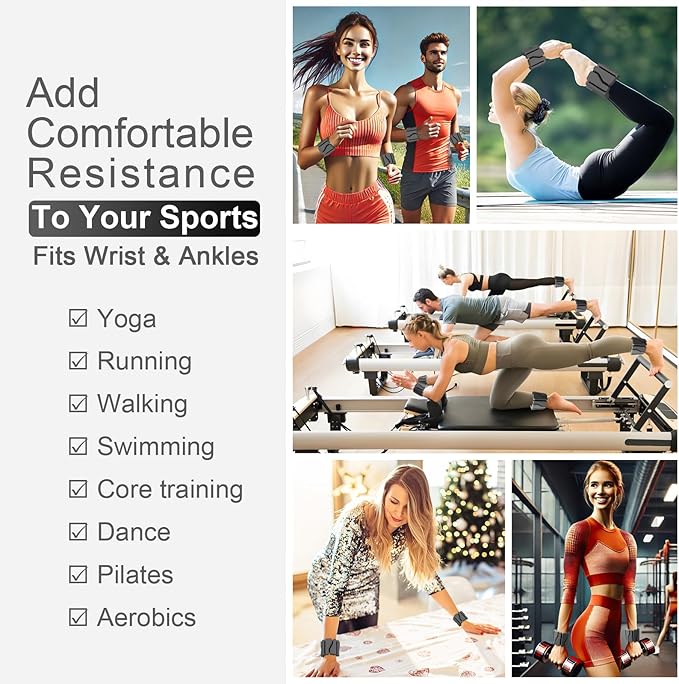 - [ADJUSTABLE & VERSATILE DESIGN] Unlike heavy or bulky weights, ADLIFE upgraded Pilates wrist and ankle weights are lightweight, customizable, and perfect for women, men, teens, and kids. Adjustable Velcro straps provide a secure fit for activities like walking, jogging, running, Pilates, yoga, home gym, and even water aerobics, making them ideal for any fitness routine.
