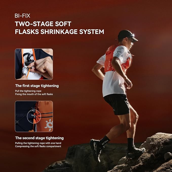 - LIGHTWEIGHT DESIGN: The backpack weight is only 230g(Medium Size), which is mainly suitable for trail running, as well as running, marathon, and light hiking. Equipped with Two 500ml TPU soft kettles, a single weight of 38g, the outward spout can rotate 360°, convenient for drinking water, when the water volume of the bottle is low, the kettle silo can be contracted, and the kettle can be stabilized without shaking, reducing interference to trail runners