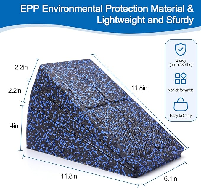 - ※ DETAILS MAKE THE DIFFERENCE : Slant Board for Calf Stretching uses EPP environmentally friendly materials that are non-toxic, odorless, waterproof, and oil-proof, 100% recyclable, and almost no performance degradation.foam wedge can withstand 440 lbs.compared with the slant board on the market, our products have the advantages of light weight and easy storage. they can be moved to every place in the house at will and can be reused many times.