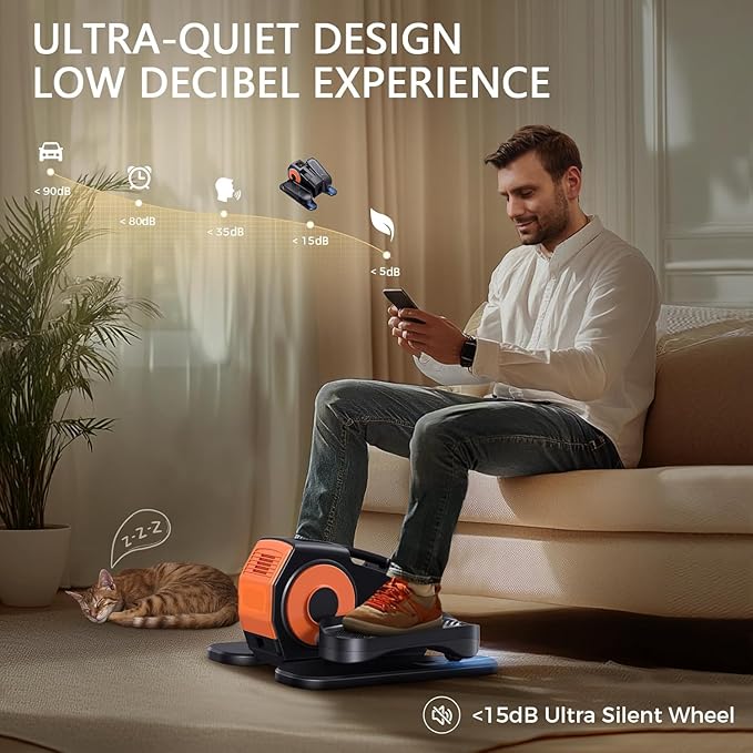 - QUIET OPERATION: This under-desk elliptical is equipped with the latest quiet system to ensure a noiseless workout even at high speeds without disturbing coworkers or family members. Perfect for home and office use. Its compact design and portable features allow you to work out anytime and anywhere