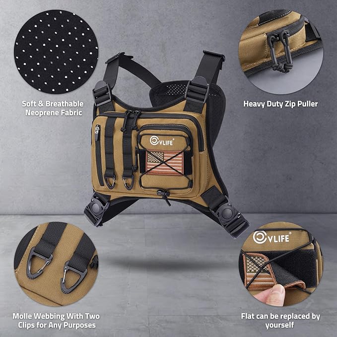 - Multi-Purpose & Anti-theft Outdoor Chest Rig Bag: This chest bag is designed to free your hands and provide you with security in public places without fear of danger or theft. The strong pocket fabric combined with breathable mesh padding provides you with good support while running, hiking, traveling, working, cycling, fitness and more.