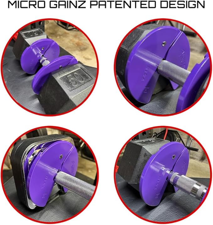 - Space-Saving Precision: Micro Gainz 4-Piece Dumbbell Micro Plate Weight Set – Four 2.5LB micro plates, expertly crafted for a secure fit on most dumbbell handles; Ideal for fractional weight, change plates, and enhancing barbell or weight plate sets; Elevate your workout with precision