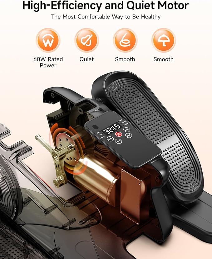 - 【Silent design】The elliptical sports machine uses noise reduction technology to keep the noise below 15 decibels. When you exercise at home or in the office, it doesn't bother anyone else, so you can use it while you work, watch TV, or read a book without any disturbance. Its compact design and portable features allow you to exercise anytime, anywhere.