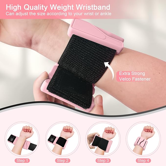 - [FULL-BODY WORKOUT ESSENTIAL]Each set includes two pink adjustable weights (1 lb each, totaling 2 lbs for the pair). Customize intensity of your weighted bracelet by adding or removing modules. Wear the weighted wristbands as arm, ankle, feet, leg, hand, or wrist weights for dryland or aquatic workouts, daily fitness, strength training, or physical therapy.