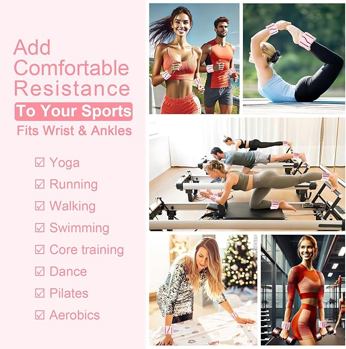 - [ADJUSTABLE & VERSATILE DESIGN] Unlike heavy or bulky weights, ADLIFE upgraded Pilates wrist and ankle weights are lightweight, customizable, and perfect for women, men, teens, and kids. Adjustable Velcro straps provide a secure fit for activities like walking, jogging, running, Pilates, yoga, home gym, and even water aerobics, making them ideal for any fitness routine.